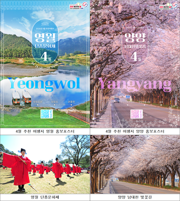강원특별자치도와 강원관광재단(대표이사 최성현, 이하 재단)은 2026년 강원 방문의 해 4월 추천 여행지로 영월군과 양양군을 선정하여 대대적인 홍보마케팅을 추진한다고 밝혔다.