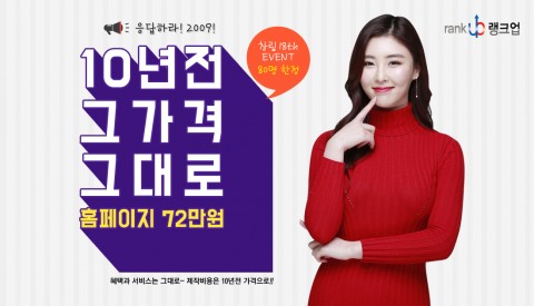 이 이벤트는 현재 홈페이지 제작 시 제공하는 호스팅 1년 무상지원, 홈페이지 매년 무료 리뉴얼, 무제한 유지보수 등 서비스와 혜택은 그래도 유지하며, 홈페이지 제작 비용은 10년 전 가격인 72만원에 제공하는 이벤트다. 10월, 11월 약 두 달간 진행되며 선착순 인원(80명) 도달 시 종료될 예정이다.