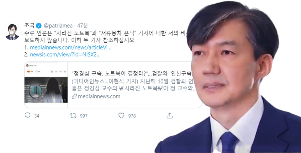 조국 전 법무부 장관이 아내 정경심 동양대 교수가 연구실에서 서류 뭉치를 들고 나오는 등 증거 인멸을 시도했다는 지난해 9월 언론 보도와 관련해 “악의적 보도”라고 비판했다.