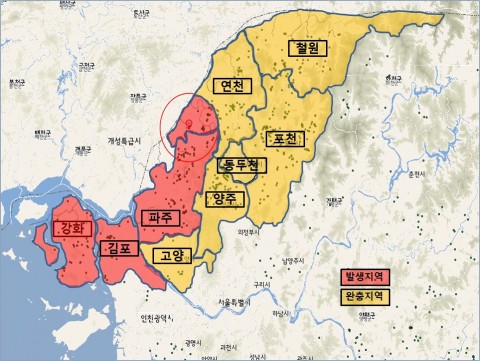 완충지역은 ‘고양·포천·양주·동두천·철원’과 연천군 발생농가 반경 10km 방역대 밖이다. 완충지역은 수평전파의 주요 요인인 차량 이동을 철저히 통제하고 지역 내 모든 농가를 대상으로 정밀검사와 농장단위 방역 강화조치를 실시한다.