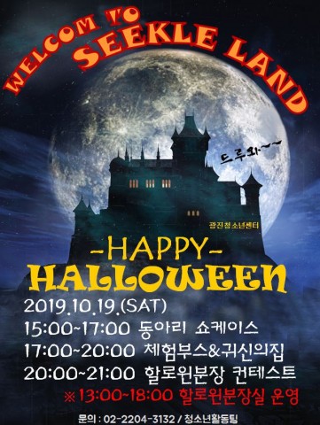 시립광진청소년센터에서는 할로윈을 맞이하여 이와 관련된 각종 행사 및 체험을 진행한다.