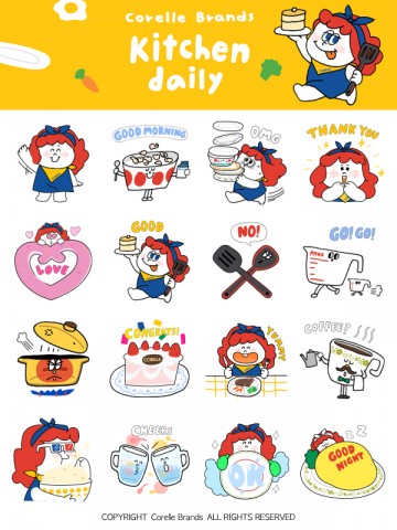 글로벌 주방용품 리더 기업 코렐 브랜드(Corelle Brands)가 유명 일러스트레이터 노이신 작가와 손잡고 카카오톡에서 사용이 가능한 ‘키친데일리’ 이모티콘을 제작, 무료로 지급한다. 코렐 브랜드는 4월 고객들과의 소통을 강화하고 각종 소식과 정보를 신속하게 제공하기 위해 카카오톡 채널을 공식 개설했다.