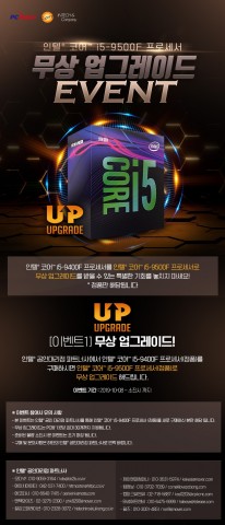 인텔 공인대리점 3사(코잇, 피씨디렉트, 인텍앤컴퍼니)는 인텔 코어 i5-9400F 프로세서를 구매하는 PC방 점주 대상으로 ‘인텔 코어 i5-9500F 프로세서 무상 업그레이드 이벤트’를 진행하고 있다.