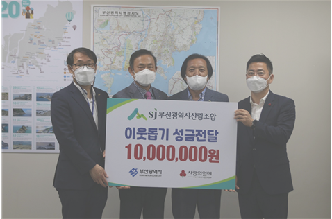 부산광역시 산림조합은 코로나19 장기화와 경기침체로 어려움을 겪는 취약계층을 지원하기 위해 이날 부산사회복지공동모금회에 성금 2천만 원을 전달했다. 조합에서 전달한 기부금 2천만 원은 사회백신 나눔 캠페인과 이웃돕기 성금으로 사용될 예정이다.
