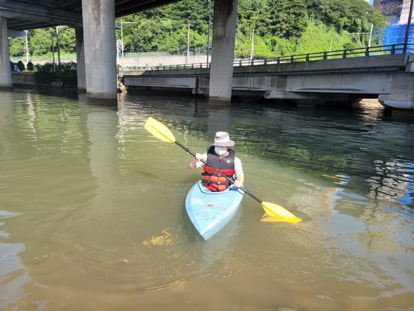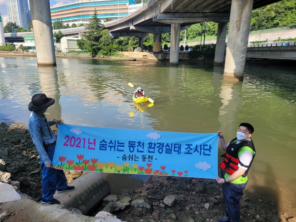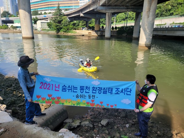 부산환경단체인 숨 쉬는 동천(대표 이용희)은 비가 자주 내린 8월 동천 하류의 환경실태를 알아보기 위해 지난 28일 오후 동천 하류 부두교 주변에서 이순규 생태수질단장과 함께 최초로 2척의 카누에 나누어 타고 악취에 대한 정성적 동천 수질개선 환경실태 조사를 실시했다고 밝혔다.