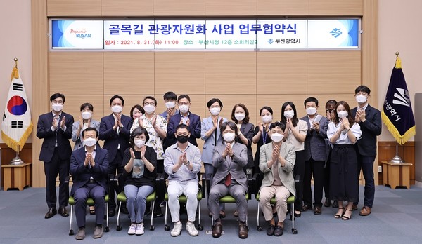 부산광역시 수영구(구청장 강성태)는 31일 부산시청 소회의실에서 문화적 고유성을 지닌 망미골목만의 관광 인프라 조성 및 콘텐츠 창출을 위해 부산시와 4자간‘부산 골목길 관광자원화사업’업무협약 행사를 가졌다.