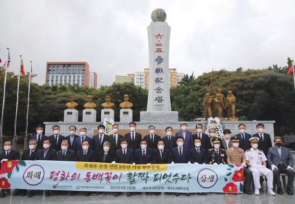 제주도 경우회가 지난 8월 2일 오전 제주 4.3 희생자 유족회와 합동으로 신산공원 6.25 참전 기념탑과 제주 4.3평화공원에서, 화해와 상생 선언 8주년 기념 합동참배를 거행했다.