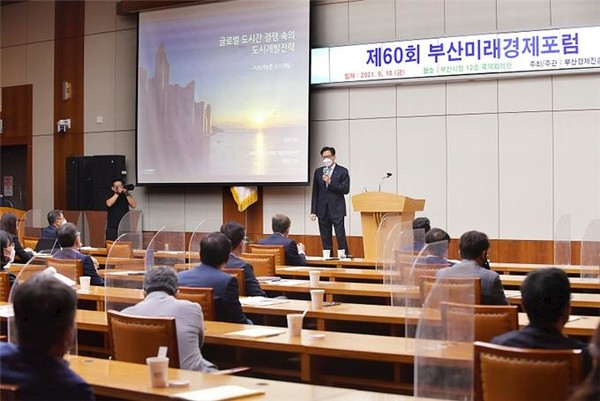부산시는 10일 오전 제60회 부산미래경제포럼을 개최하고 ‘지속가능한 도시개발’을 주제로 부산시 도시개발전략을 모색하는 시간을 가졌다.
