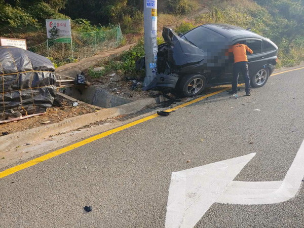 또 1일 오전 8시 43분경 부산시 강서구 가덕해안로 삼거리팬션 앞에서 액티언 승용차량이 도로이정표 지주대를 충격해 사망한 단독사고가 발생했다.