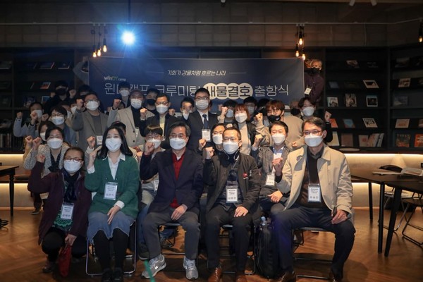 20대 대선 출마를 선언한 김동연 전 부총리가 지난 10일 합정동의 한 카페에서 윈디(winDY)캠프 자원봉사자들이 모여 ‘새물결호’ 출항식을 가졌다고 밝혔다.