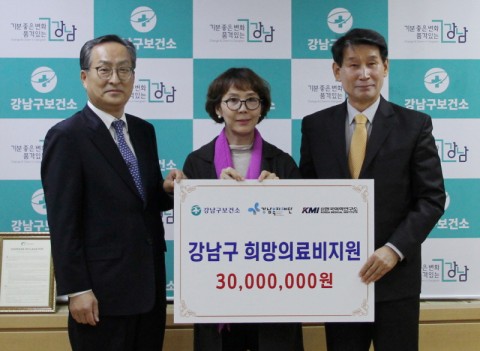 KMI한국의학연구소(이사장 김순이)는 1일 강남구보건소와 강남복지재단에 ‘강남구 희망의료비 지원사업’ 기부금 3000만원을 전달했다.
