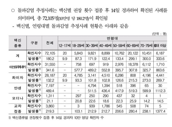 김 의원은 “아래 표를 보십시오. 백신 접종 완료했음에도 돌파감염이 많은 백신은 얀센, 아스트라제네카"라며 “제가 지난 해 11월 17일 복지부장관께 선진국처럼 모더나, 화이자 계약체결 요구했을 때 정부는 오히려 그들 제약사가 계약을 재촉한다며 여유를 부렸으나 늑장 도입했다”면서 “초창기 AZ와 얀센 접종률이 높았고, 모더나와 화이자 도입이 늦어지니 접종간격도 3주 원칙이 6주로 늘어났다가 교차접종도 했다가 뒤죽박죽이었고, 부스터샷 시작도 늦은 탓에 물 백신 말이 나오는 것"라고 지적했다.