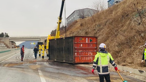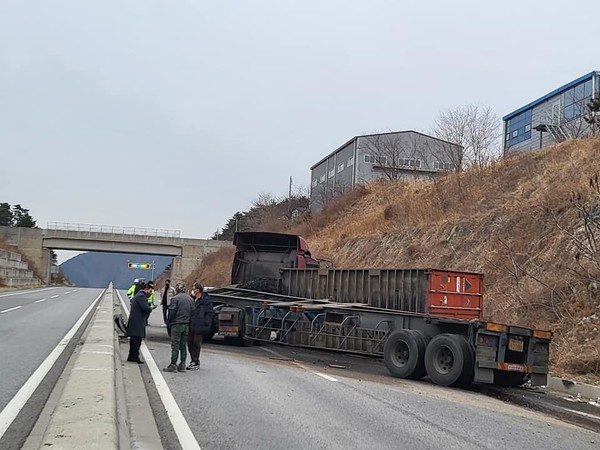 7일 오후 3시 43경 부산시 기장군 장안읍 월내리 31번 자동차전용도로에서 트레일러가 전복되는 사고가 발생했다.