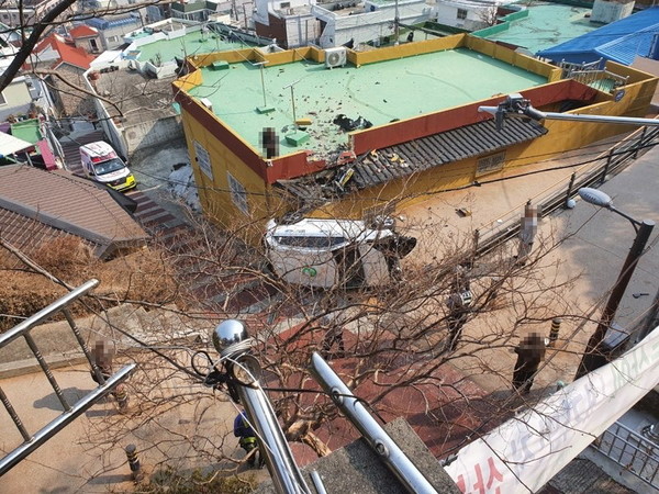 이 사고로 운전자 A씨는 에어백으로 인해 경상을 입었으나, 뒷좌석 승객 B씨(70대, 여)는 중상을 입고 병원으로 후송됐으며, 추락한 차량으로 인해 주택 지붕 일부가 파손됐다.