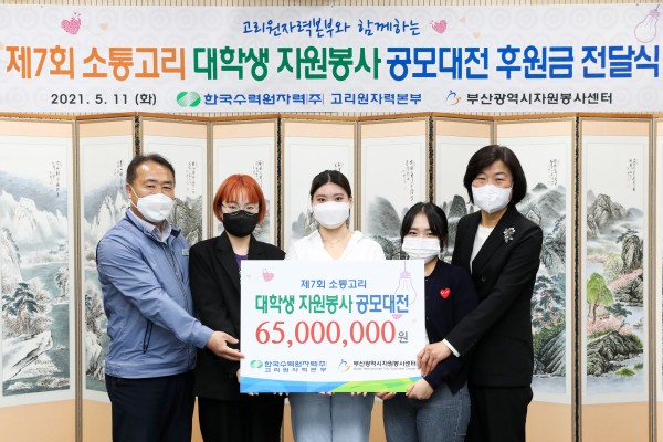 부산광역시자원봉사센터(센터장 백순희)는 한국수력원자력(주) 고리원자력본부(본부장 이광훈)와 함께하는 ‘제8회 소통고리 대학생 자원봉사 공모대전’ 후원금 전달식을 5월 18일 11시에 고리원자력본부 국제회의장에서 개최했다고 19일 밝혔다.