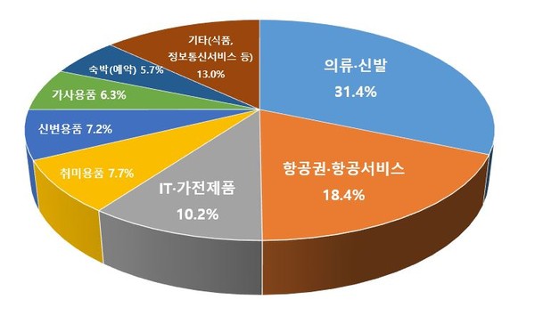 부산 지역 소비자 상담내용을 분석한 결과, A 씨의 사례처럼 의류나 신발을 구매했다 반품 및 환급을 거부당한 부산 지역 소비자가 가장 많은 것으로 나타났다. 국제거래 관련 부산 지역 소비자 상담 가운데 품목이 확인되는 805건 가운데 ▲의류·신발이 253건으로 전체 상담의 31.4%를 차지했으며 뒤를 이어 ▲항공권·항공서비스 148건(18.4%) ▲IT·가전제품 82건(10.2%) 등 순으로 나타났다.