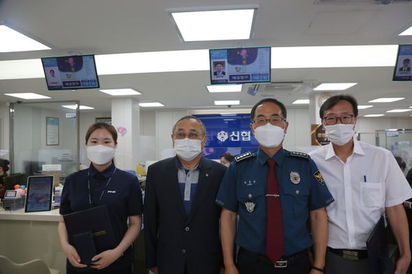 부산 북부경찰서는 지난 6월 13일 오후 1시 51분경 부산시 북구 구포동 신협직원이 보이스피싱범을 경찰에 신고해 피해금액을 전액 회수하도록 도움을 주어 경찰서장이 감사장을 전달했다고 밝혔다.