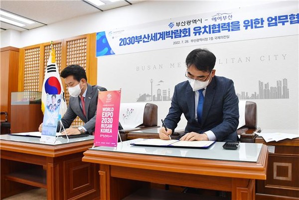 부산시·에어부산, 2030부산세계박람회 유치 상호협력을 위한 업무협약 체결