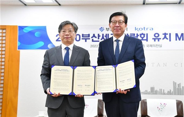 부산시는 오늘(19일) 대한무역투자진흥공사(KOTRA)와 2030부산세계박람회 유치 협력을 위한 업무협약을 체결했다고 밝혔다.