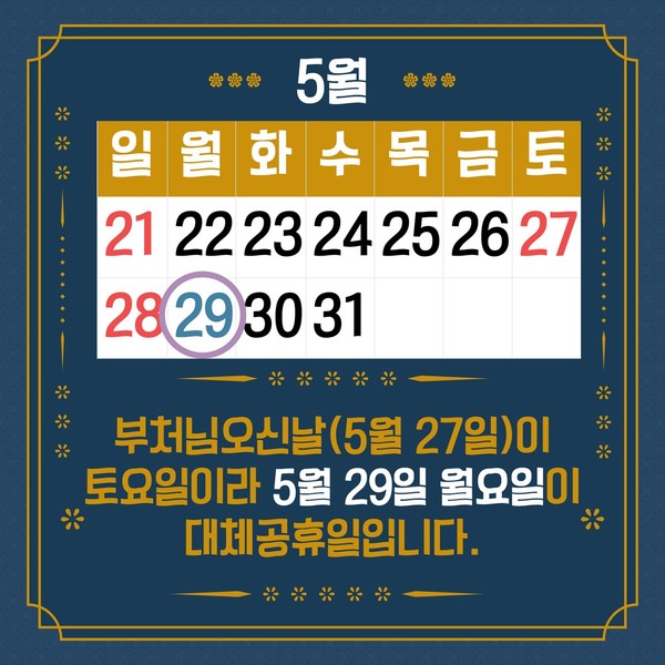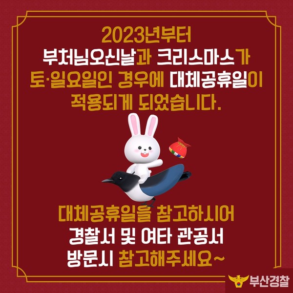 하지만 정부는 올해부터 석가탄신일과 성탄절도 대체공휴일에 포함할 전망이다. 정부는 지난해 12월 ‘2023년 경제정책방향’을 발표하며 이 같은 방침을 밝힌 바 있다.