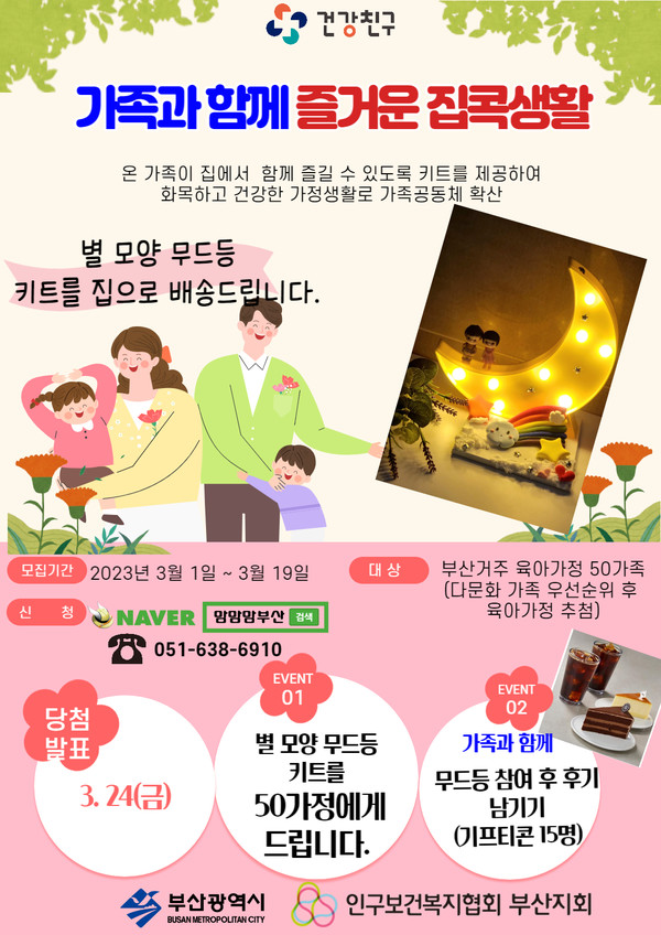 부산시와 인구보건복지협회 부산지회가 육아 가정의 화목을 도모하기 위해 ‘가족과 함께 즐거운 집콕생활’프로그램을 진행한다고 7일 밝혔다.