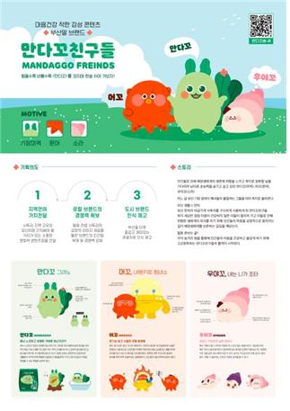 일반부 대상은 ㈜디자인부산이 출품한 ‘만다꼬친구들’ 부산말 브랜드 디자인이 선정됐다. 부산 사투리를 소재로 지역의 정체성을 강조하고 공감되는 일상 이야기에 사투리를 효과적으로 상품화한 다양한 콘텐츠를 선보였다.