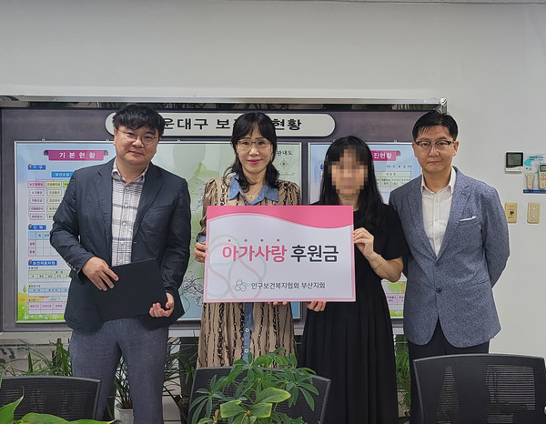 인구보건복지협회 부산지회는 21일 해운대구보건소에서 급성 림프모구성 백혈병을 앓고 있는 환아에게 아가사랑후원증서와 후원금 300만원을 전달했다.