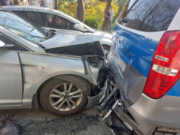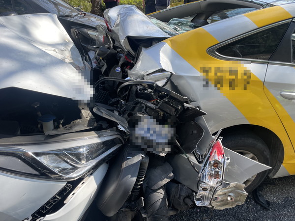 이 사고로 이륜차운전자 B씨(50대, 남)가 중상을 입었고, 택시운전자 A씨와 승객 및 승합차 운전자가 경상을 입고 병원으로 후송됐다.