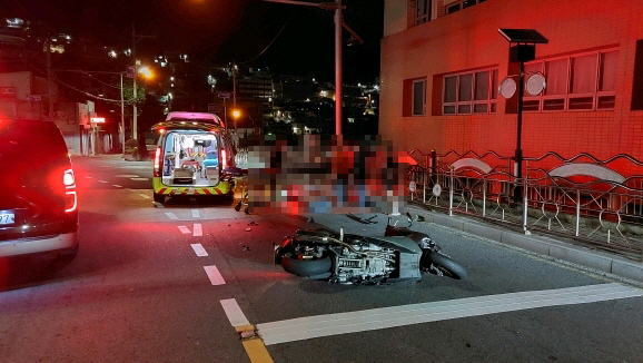부산 서구 남부민동에서 이륜차량 끼리 충돌 사고가 발생했다.