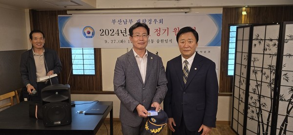 이날 신임 회원으로 가입한 배광호 회원은 87년도 경찰 입문에 입문해 부산 영도, 중부, 남부 등 주요 보직을 두루 역임하고 2022.6월 금정서에서 정년퇴임후 남부 경우회 평생회원으로 가입했다. 이에 최광택 회장은 신임 배광호 회원에게 경우회 평생회원증, 경우회뺏지, 경우모자를 전달하였다.