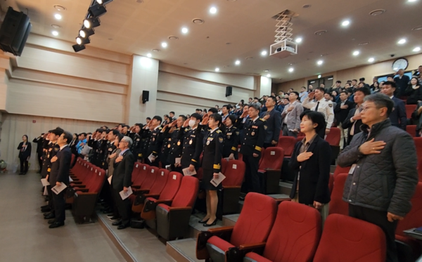1부 행사는 경무계장 임채용 사회로 국민의례에 이어 홍보영상물 시청과 대통령치사 대독, 김동수 서장의 축사, 경찰가 제창의 순서로 진행됐다. 이어 기념 촬영을 끝으로 행사를 종료 했다.