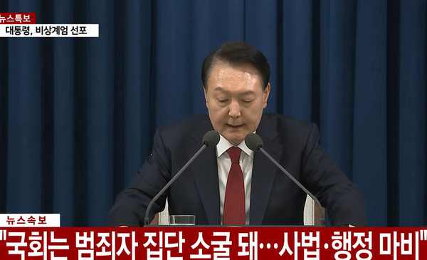 윤석열 대통령이 3일 밤 긴급 담화를 통해 “자유 헌정질서를 지키기 위해 비상계엄을 선포한다”고 밝혔다.