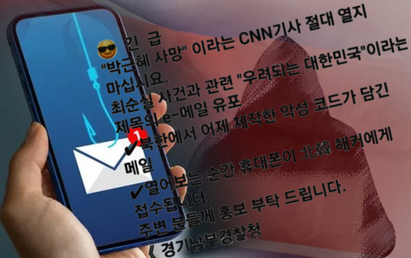 또 “열어보는 순간 휴대전화가 北韓 해커에게 접수됩니다. 주변 분들께 홍보 부탁드린다”라며 경기남부경찰청 소속 특정 경찰관의 이름이 메세지 하단에 표시된 상태다.