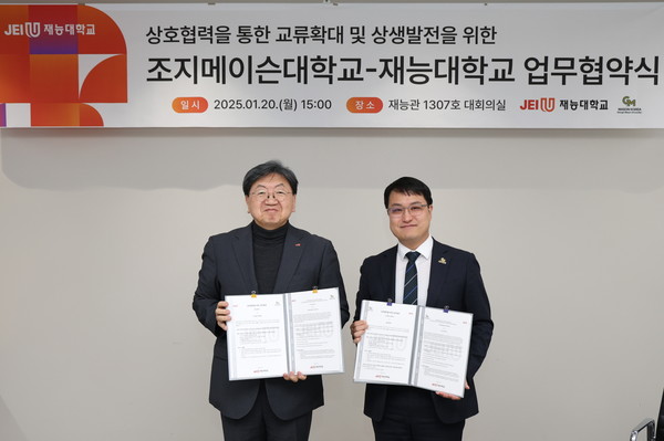 한국조지메이슨대학교(George Mason University Korea)는 지난 20일 재능대학교와 상호협력을 위한 업무협약(MOU)을 체결했다고 밝혔다.