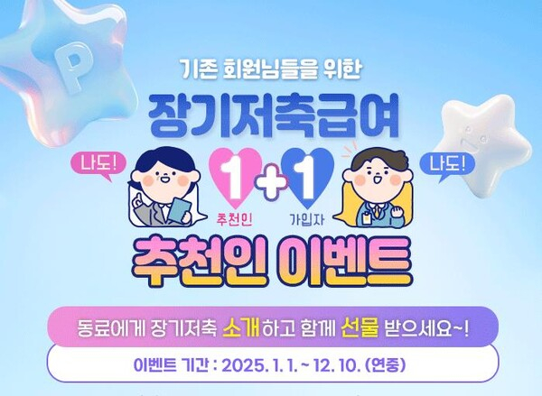 한국사회복지공제회(이사장 강선경)는 2025년을 맞아 기존 회원과 신규 회원 모두 혜택을 받는 '장기저축급여 1+1 추천인 이벤트'를 연중 진행한다고 밝혔다.