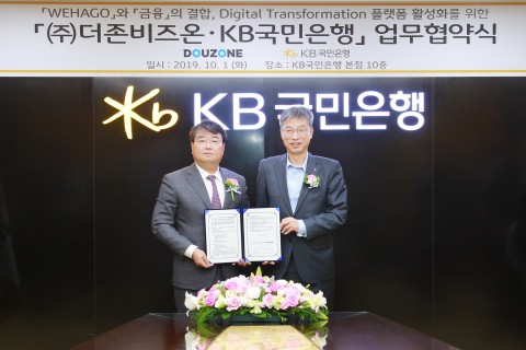 더존비즈온(대표 김용우)은 KB국민은행(은행장 허인) 여의도 본점에서 ‘WEHAGO와 금융의 결합, Digital Transformation 플랫폼 활성화를 위한 업무협약’을 체결했다고 2일 밝혔다.