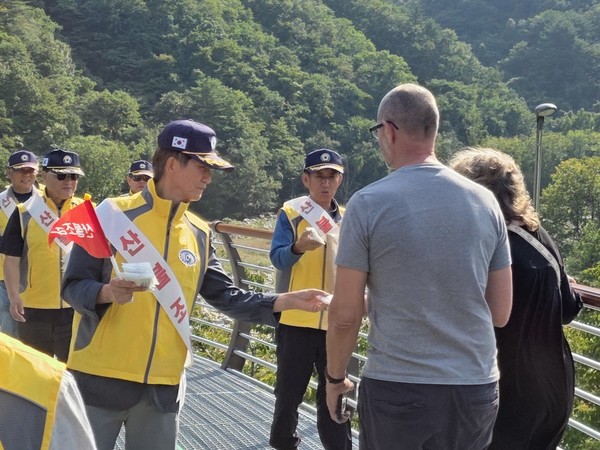 또한, 산책로를 따라 행진하며 관광객들에게 홍보티슈를 배부하고 △산행 시 인화물질 소지 금지 △산불발견 시 즉시 신고 △자연훼손 금지 △안전한 산행 등을 당부했다.