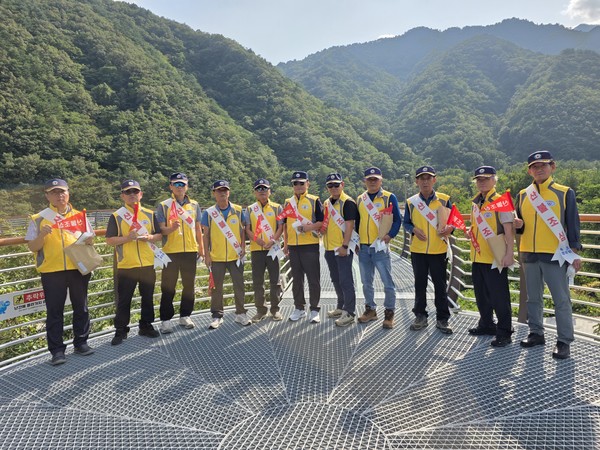 김남혁 봉사단장을 비롯한 참가자들은 ‘산불조심’ 어깨띠를 두르고 ‘산불예방! 실천이 중요합니다!’ 문구의 현수막을 내걸어 관광객들의 관심과 실천을 유도했다.