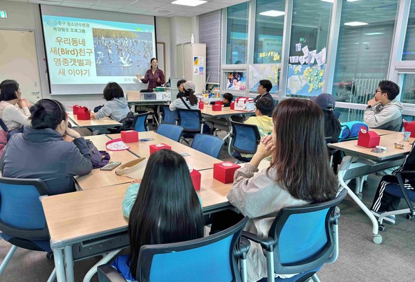 인천중구시설관리공단(이사장 손영식) 운영 중구청소년수련관은 지난 18일 관내 초등 청소년과 가족 30명을 대상으로 송산유수지와 송산(운남동 소재)에서 가족 참여형 탐조 프로그램 ‘우리동네 새(Bird)친구’를 성황리에 진행했다.