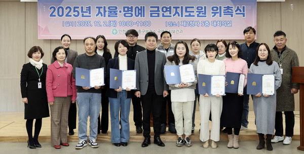 인천시 중구는 지난 2일 제2청 대회의실에서 ‘2025년 자율·명예 금연지도원 위촉식 및 직무교육’을 실시했다.