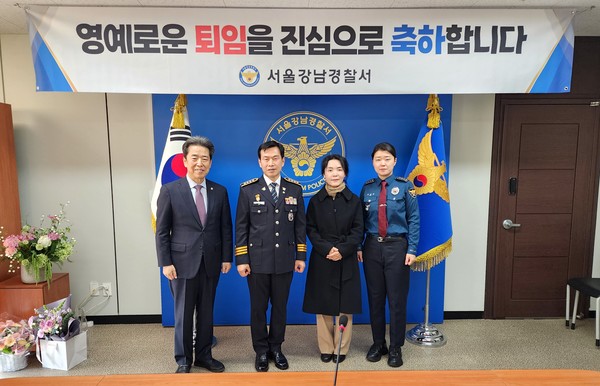 서울강남경찰서(서장 주승은)는 30일 오전 10시 서울강남경찰서 본관 5층 강남마루에서 2025년 하반기 명예로운 퇴임식을 거행했다.