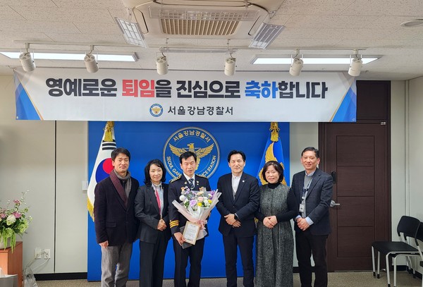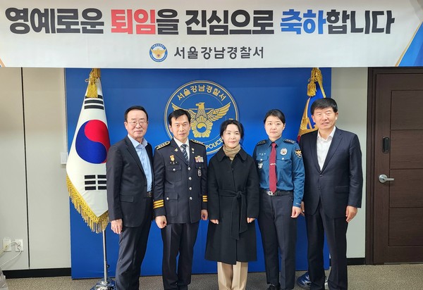 이날 행사에는 주승은 서울강남경찰서장을 비롯한 경찰서 직원들과 서울강남재향경우회 이승용 회장 및 임원진이 참석해 퇴임자들에게 축하와 감사의 뜻을 전했다.