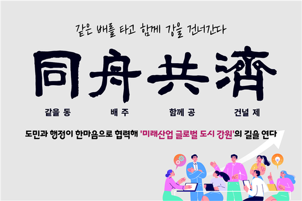 강원특별자치도(도지사 김진태)는 2026년도(병오년) 신년 화두 사자성어로 ‘동주공제(同舟共濟)’를 선정했다.