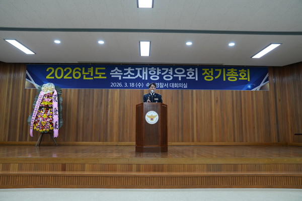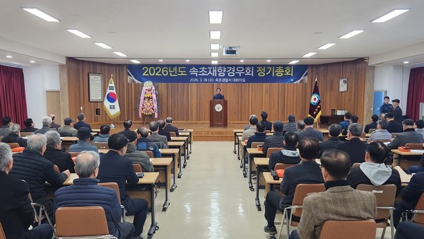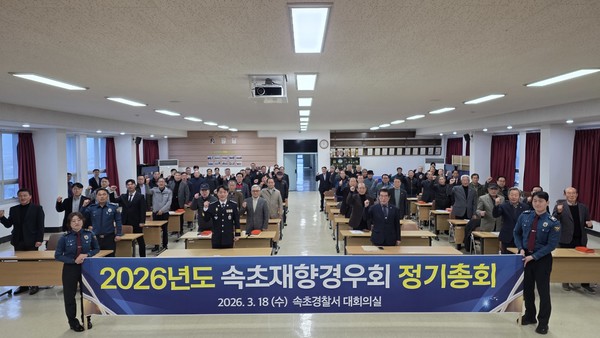 속초재향경우회(회장 박윤재)는 18일 속초경찰서 대회의실에서 회원 및 현직 경찰관 등 100여명이 참석한 가운데 제50차(2026년도) 정기총회를 개최했다.