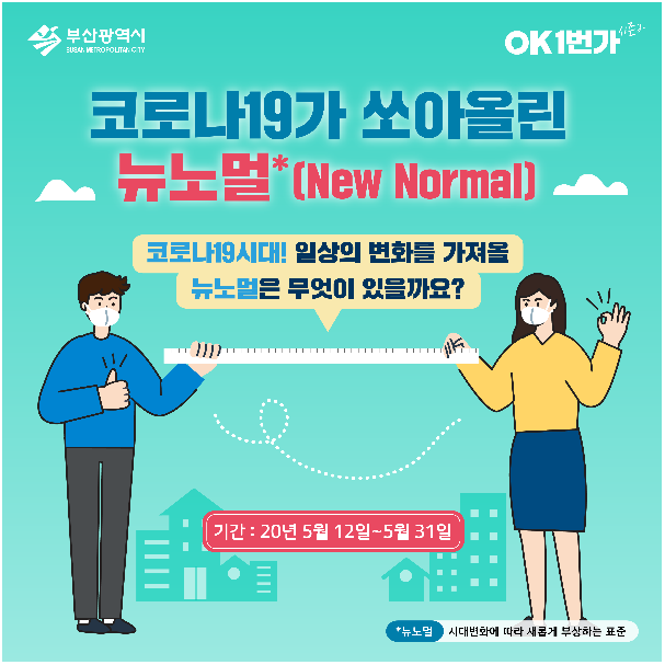 부산시 관계자는 “코로나19에 따른 ‘사회적 거리두기’가 ‘생활속 거리두기’로 전환되면서 시민들의 사회·경제활동이 재개되었고 코로나19 이전의 일상과는 다른 뉴노멀이 펼쳐지고 있다”라면서, “이번 온라인 토론을 통해 일상과 생활방역이 조화롭게 이루어지는 새로운 일상을 시민들과 공유하며 포스트 코로나에 대비해 나가겠다”라고 말했다.