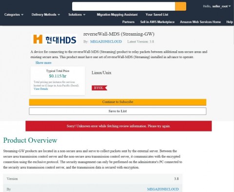 현대HDS(대표이사 최철식)가 아마존웹서비스(AWS) 마켓플레이스에 망연계솔루션(reversWall-MDS)을 등록, 서비스를 본격 시작한다고 7일 밝혔다.